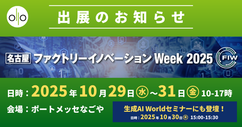 株式会社Olloは、2025年10月29日(水)〜31日(金)に開催されるファクトリーイノベーションWeek[ 名古屋]に出展します。