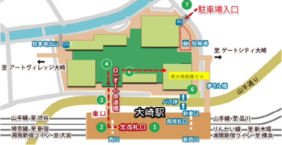 ※ JR「大崎駅」北改札口を出て右手(東口方面)、徒歩3分